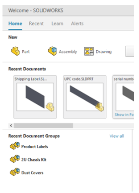 Note that there is a pin available next to the Document Group name, so you can fix your favorite SOLIDWORKS files into place.